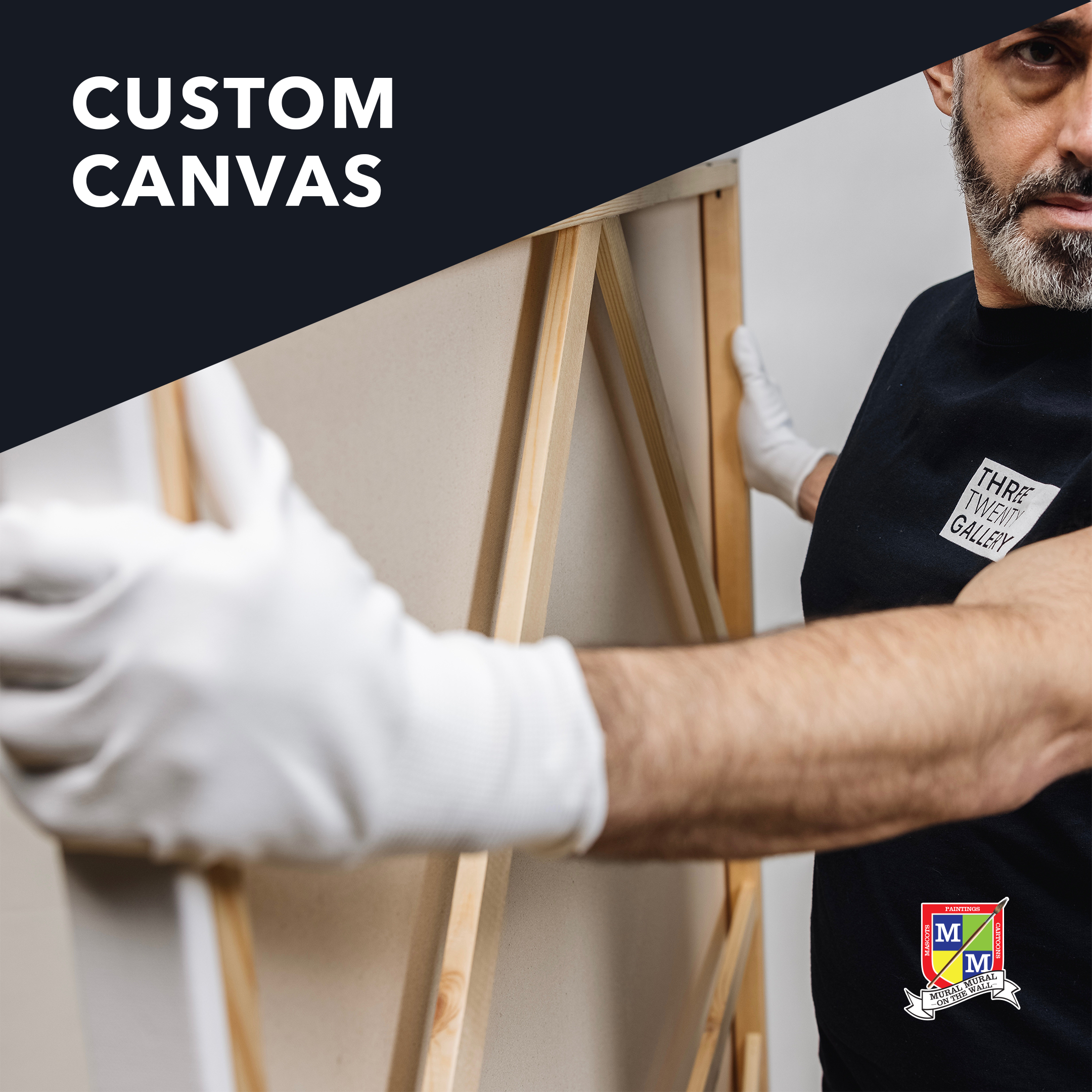 Bring museum quality art into your home or office decor with our custom canvas. Choose from our select artist stock or craft your custom painting; including a variety of textures, warm tones and lively colors. Many works feature shape-like patterns or recognizable figures. Our classic stretched canvas is wrapped art gallery style – precision around a wood frame, hand-stapled with care and clean corners.
