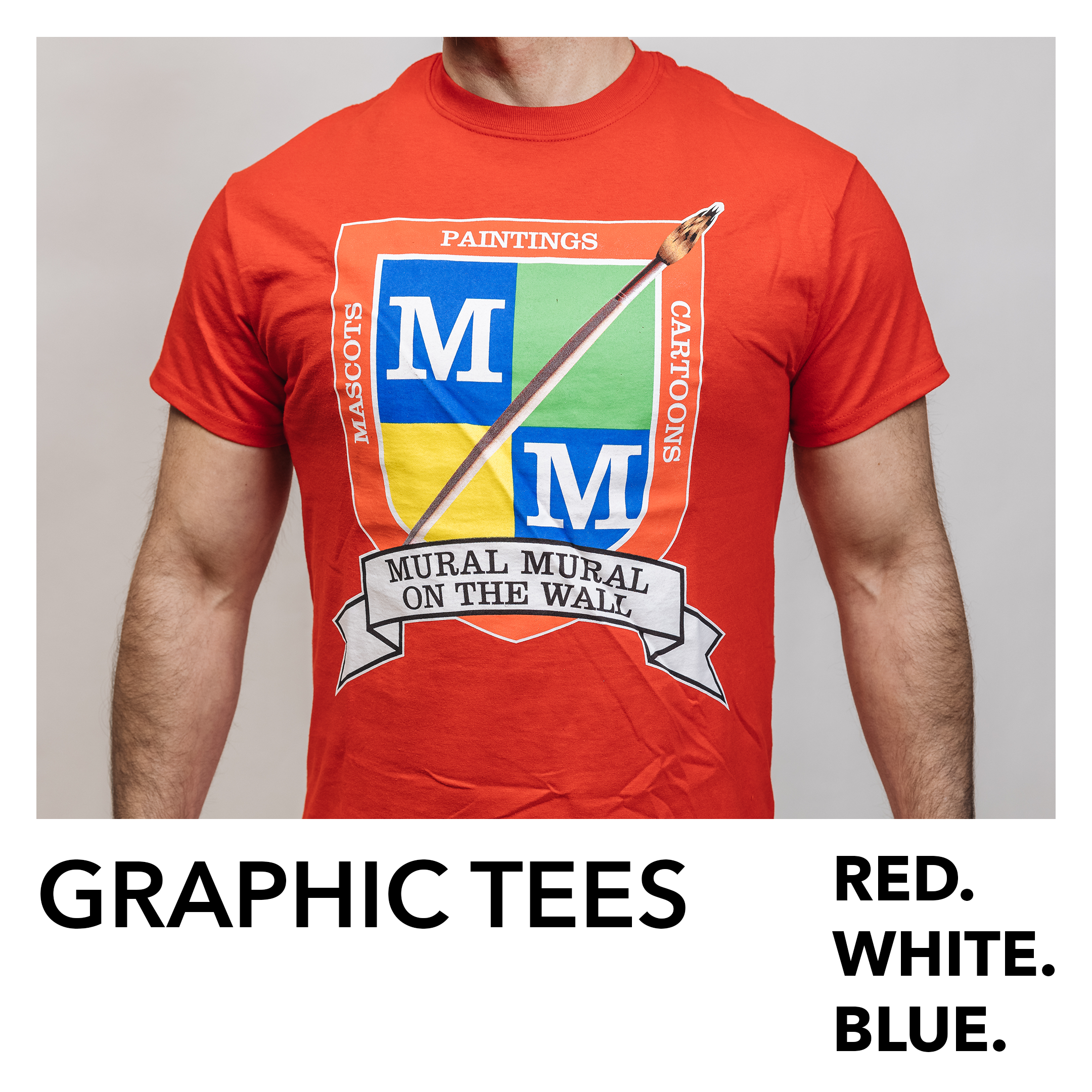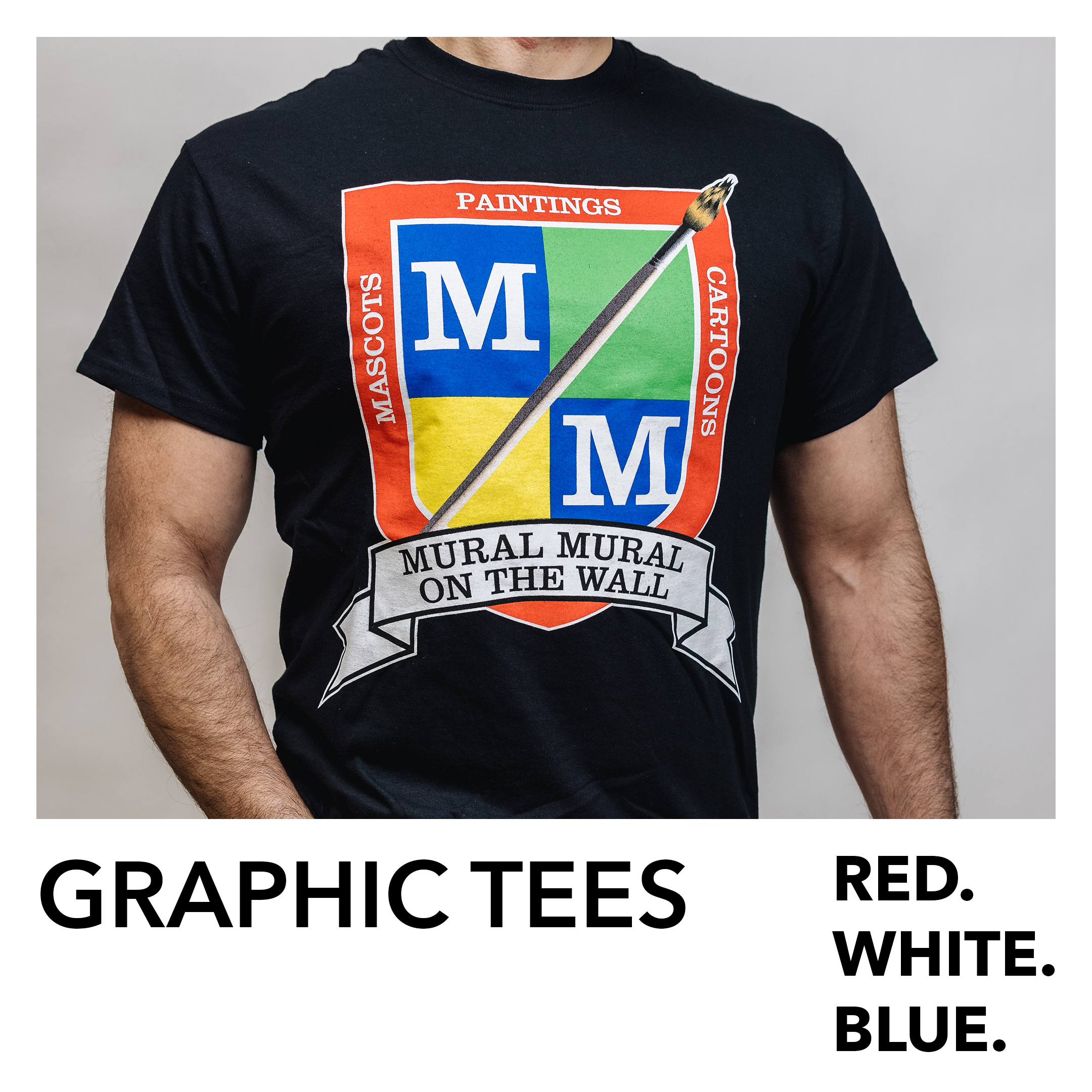 Our MMOTW high-quality 100% ultra-breathable cotton fabric. Script logo in vintage screen print on the front. Crest “Mural Mural On The Wall” text in vintage print on the back. Official tees are produced with a woven “Oil Based” label for authenticity.